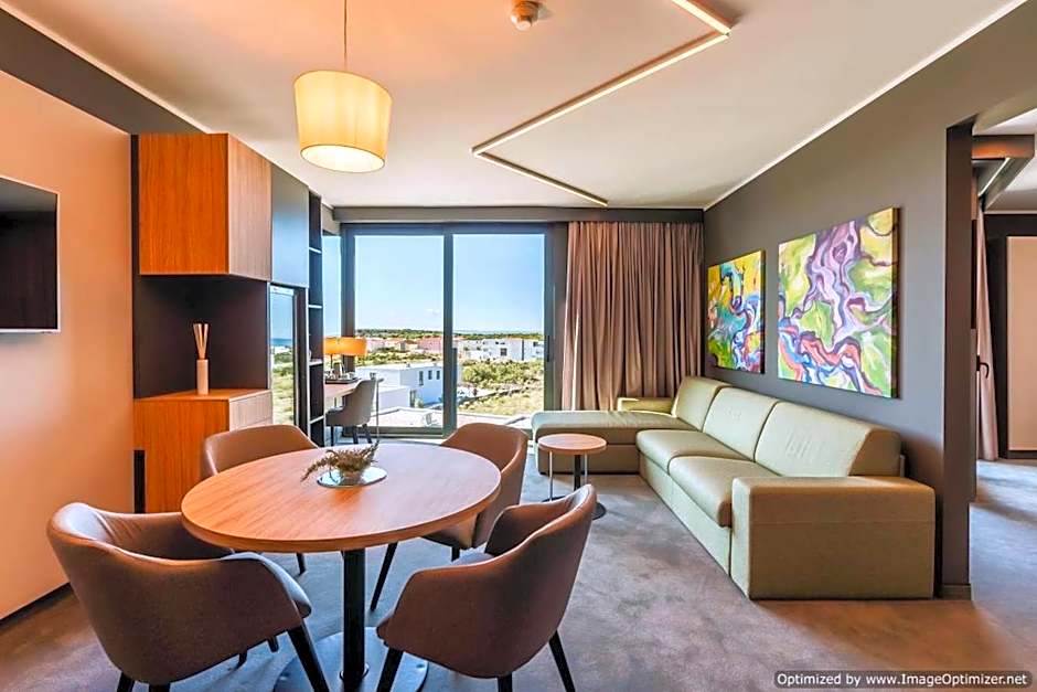 Boasting a private entrance, this air-conditioned suite comes with 1 living room, 1 separate bedroom and 1 bathroom with a walk-in shower and a bath. The spacious suite features soundproof walls, a mini-bar, a seating area, a flat-screen TV with cable channels, as well as sea views. The unit has 3 beds.
